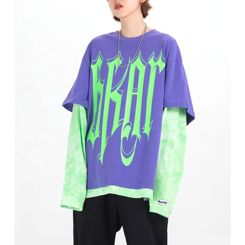 Bán Buôn Thời Trang Phun Thư In Lỏng Dài Tay Áo Người Đàn Ông Của Mỹ Cao Đường Phố Giản Dị Vòng Cổ Dài Tay Áo